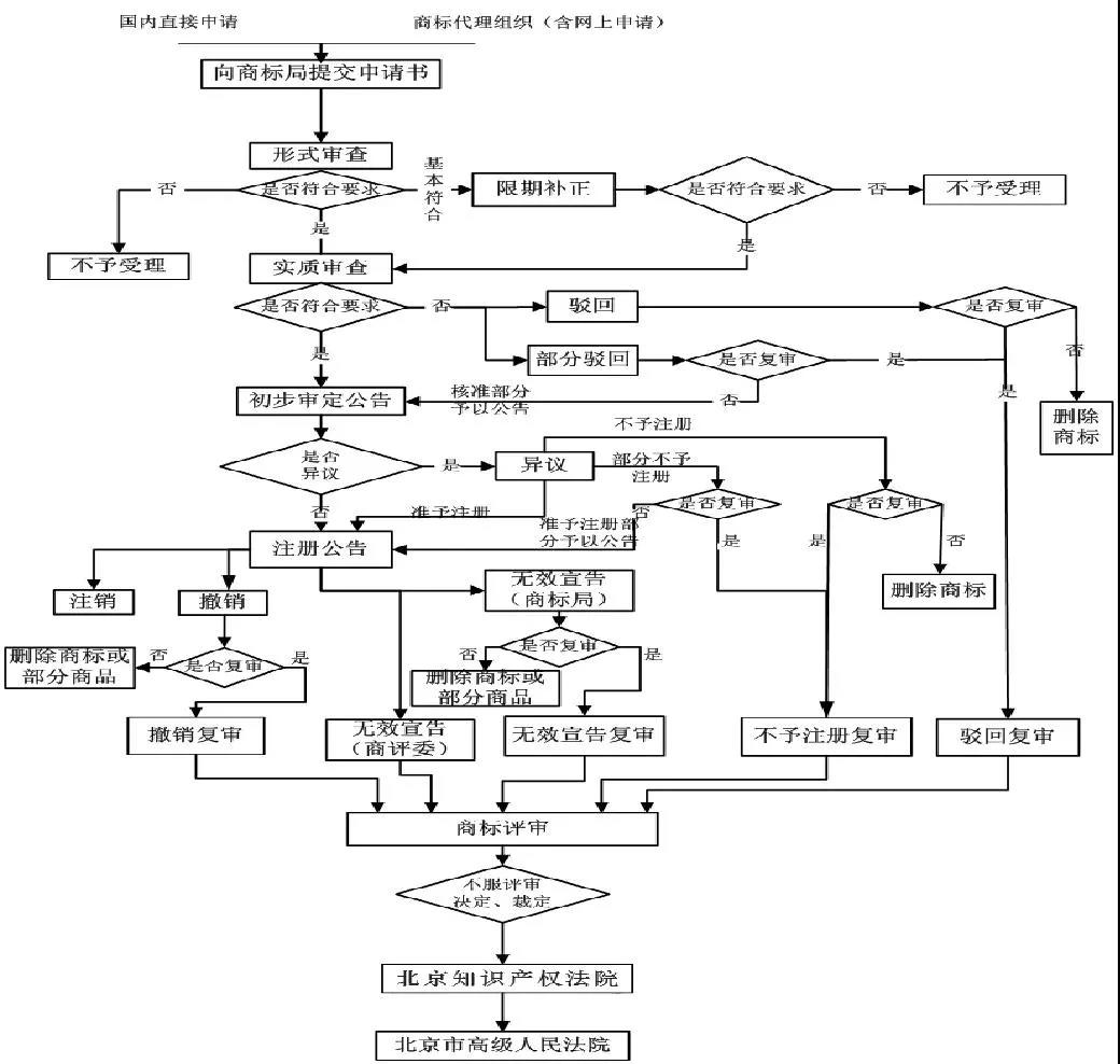 注冊(cè)商標(biāo)的流程:向商標(biāo)局提交申請(qǐng)書→形式審查→實(shí)質(zhì)審查→初步審定公告→注冊(cè)公告→拿證