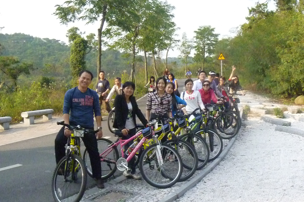 除了幽幽山地、古跡,金鐘水庫段綠道沿線美景也同樣值得留戀。一路騎行,能看到大片蘆葦蕩、深綠色湖水、翔集的水鳥和漫山的松樹,還能看到兩旁種植的芭蕉、黃皮、荔枝、龍眼等嶺南水果,全線宛如一條蜿蜒盤旋的綠色綢帶。 ~~~~看看, 他們的笑容跟陽光一樣燦爛~~~~