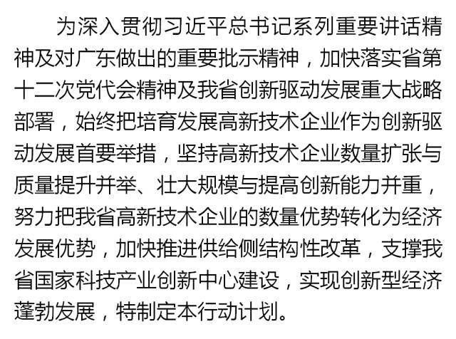 到2020年,高新技術企業工業總產值占全省規模以上企業工業總產值比重達35%;高新區、專業鎮、創新型產業集群等產業載體的高新技術企業數量、產值比重大幅增加,其中省級高新區內高新技術企業比重達50%以上、高新技術企業工業增加值占全省規模以上工業增加值比重達50%以上。